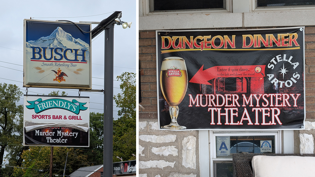 Arriving at the location, you’re instantly greeted by the juxtaposition of a murder mystery theater and a sports bar. However, once you’re inside, you’d never know what’s happening on the main floor.