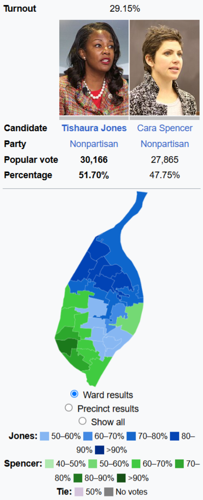 All in all, the spring mayoral election will likely hinge on many of the same racial fault lines that have long dominated the city’s political discussion. If the saying “demography is destiny” holds true in the spring (and if post-#Ferguson cross-racial voting trends are fading), then Mayor Jones’ re-election effort faces significant headwinds from changing demographics.