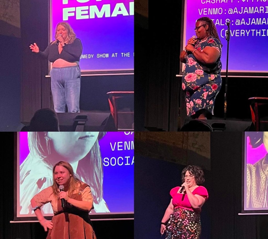 The evening was headlined by Libbie Higgins and hosted by Meredith Hopping. As advertised, all the comics were women, and they came from numerous walks of life. There was a gynecologist/comedian. A past host Tina Dybal, was a special guest. The event’s host Meredith, who’s comedic style is focused on storytelling, spoke of being a “trauma protector”. Libbie “heckled” me twice walking outside to hang with my pal. It was great; I quipped something back that supported her as she was ribbing me. It was witty and funny. I couldn’t help but note that most of the comedians openly admitted being autistic to some level. As I am also afflicted with ASD, I could empathize with some of their experiences. I’ve tried doing stand up three times, and I am currently still writing with my comedian roommate. Humor is indeed good “medicine”, and when you look into the life of many comedians, one can often find pain or trauma as a main catalysts for their art. I, for one, am grateful for the many local and international comedians who continue to offer healing in the context of their pain. In many ways, I consider some of our current and past comedians to be philosophers in addition to providing laughter and linguistic and nuanced insights. All-in-all, the evening was extremely entertaining. This series happens three to four times a year, and I highly recommend making a point to see it.