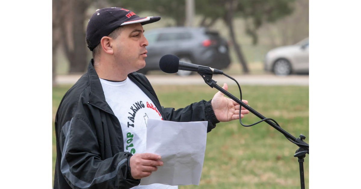 Author speaking at recent Progressive Jews of St. Louis event – Photo by Richard Reilly