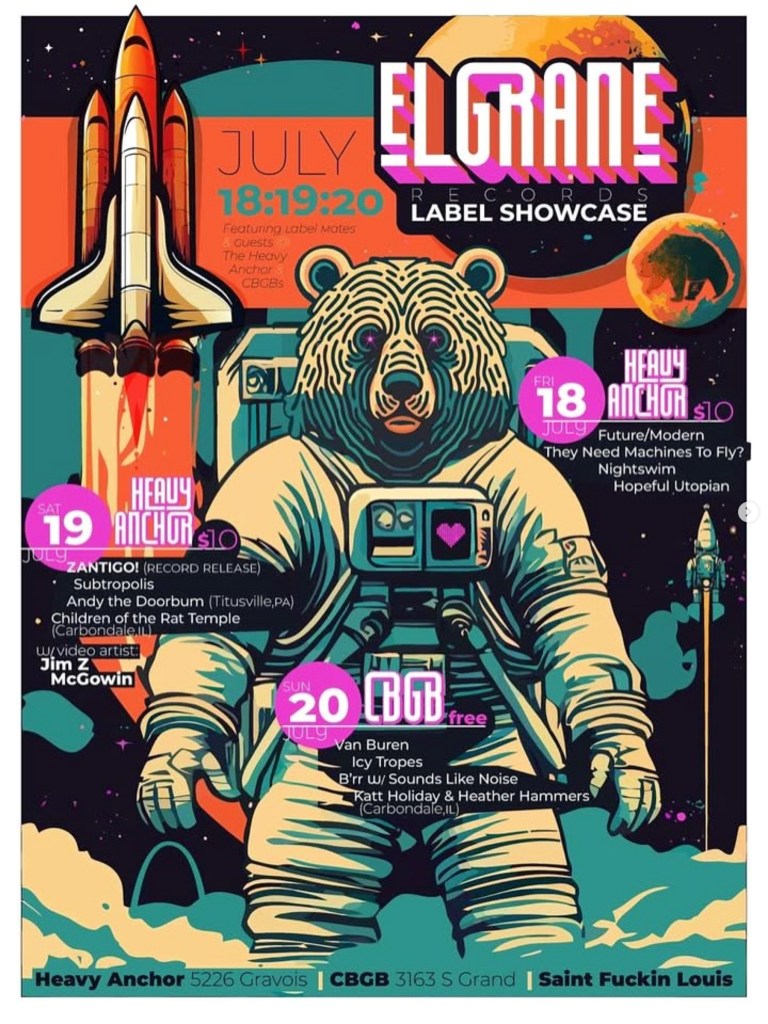 If you’re thinking a bunch of label artists being in close proximity to each other means they could throw a hell of a party, you’re not wrong. Not only are you smart, but you’re super cool, so you’re invited to come check the party out for yourself July18-20th, when El Gran E is bringing their label showcase to STL for 3 days. Friday, July 18th and Saturday July 19th are both at Heavy Anchor (5226 Gravois Ave), but there are so many awesome artists that the party continues Sunday, July 20th at CBGBs (3163 S Grand Blvd)!