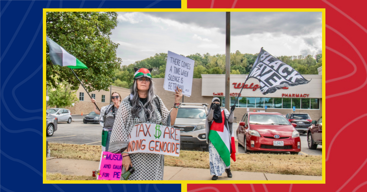 St. Louisans gathered to make their voices heard at Saturday’s “Make Billionaires Pay” event, which was organized by Indivisible St. Louis. They gathered along Manchester Ave. in the west St. Louis County suburb of Ballwin, bringing their homemade signs and various flags. Common themes among the protestor’s messages were opposition to Israel’s war in Gaza, overreach by the Trump administration, and overall economic inequality in our country.
