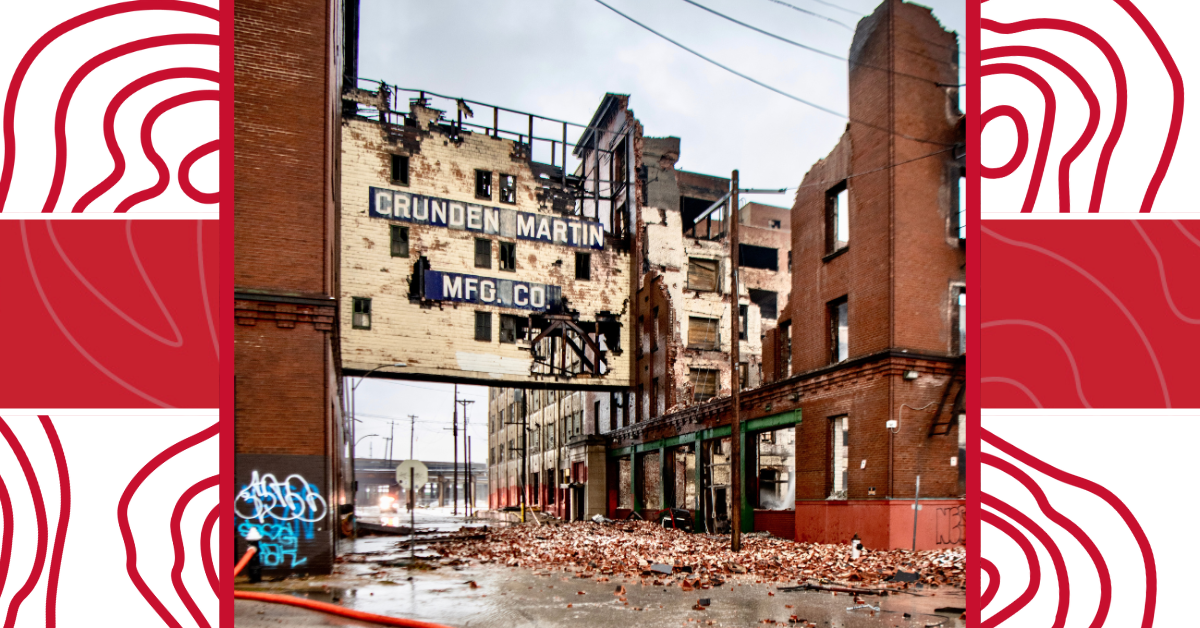 Early on the Saturday morning after Thanksgiving Day, St. Louisans were hit with a wave of spectacular images and videos of the Crunden-Martin Manufacturing Company warehouses engulfed in a six-alarm fire that devastated the historic complex. Views of mighty red-brick walls framing flames reaching far above the six-story buildings shocked many. Clearly, most of the Crunden-Martin complex will never reap the benefits promised by a recent adaptive reuse project. At least one person, a homeless resident, is still missing; thankfully, the Fire Department worked diligently to rescue many others.