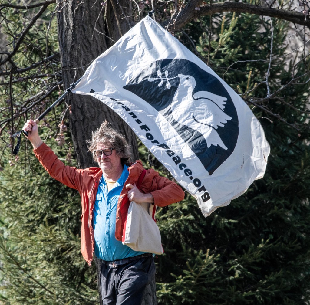 The action opened with a prayer for peace from Friar Francisco Gonzales, which acknowledged the horror of the mass killing of girls from an American – Israeli missile strike on a school. Then Chris Henry with Veterans for Peace spoke, condemning America and Israel’s “heinous, unlawful attack on Iran”. He urged all people to the streets to resist the “sick, psychopathic, genocidal plans” of our ruling class.